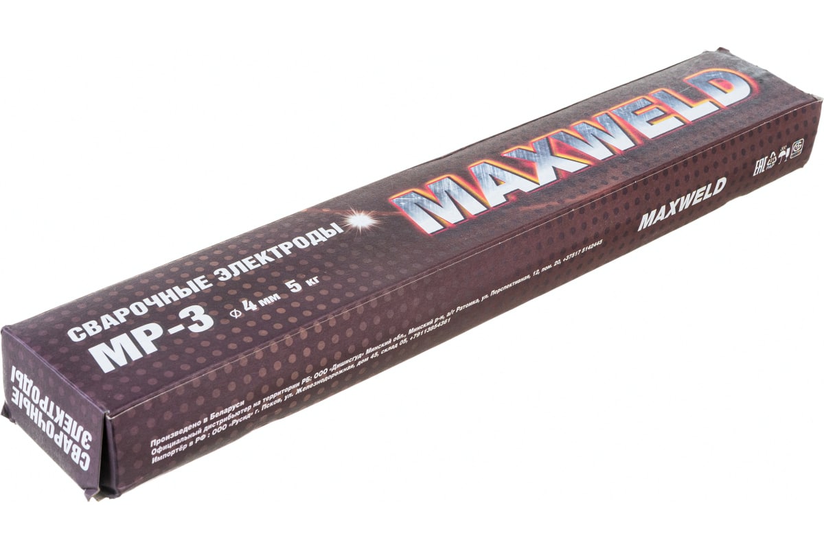 Электроды МР-3 MAXWELD MR45 предназначены для сварки рядовых и ответственных конструкций из углеродистых сталей во всех пространственных положениях шва, кроме вертикального «сверху-вниз», переменным и постоянным током обратной полярности.