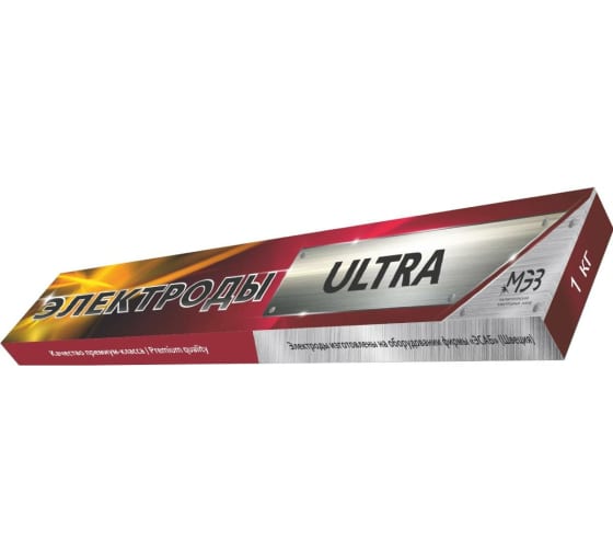 Электрод УЛЬТРА (3 мм; 1 кг) МЭЗ Ц0039231/Ц0040169 предназначен для ручной дуговой сварки на постоянном или переменном токе рядовых и ответственных конструкций из низкоуглеродистых марок сталей, во всех пространственных положениях.