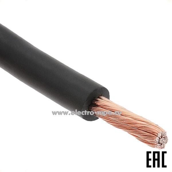 Кабель имеет 1 медную многопроволочную жилу сечением 25 мм2. Изоляция выполнена из композиции на основе термоэластопластов. Соответствует требованиям ГОСТ 24334-2020.