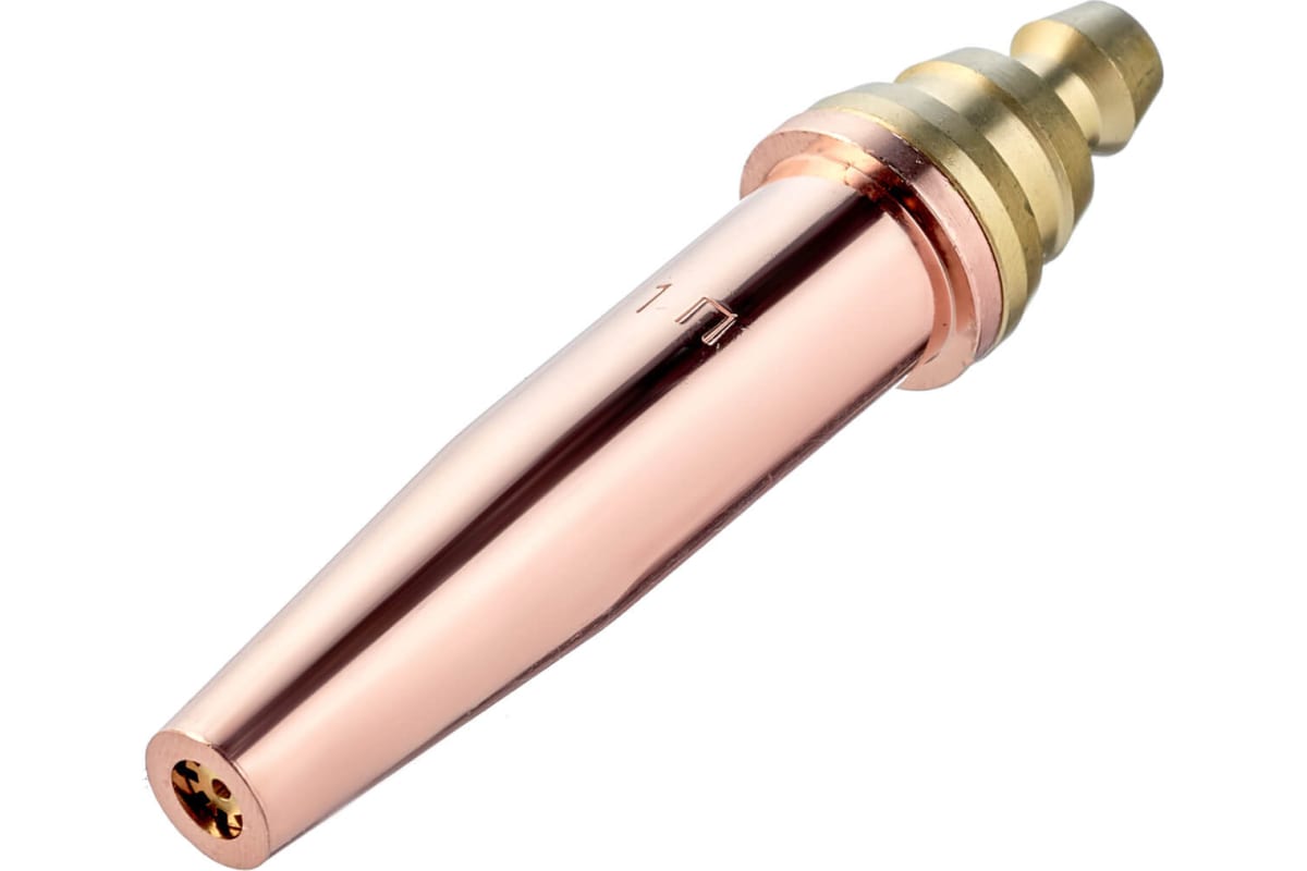 Разборный пропановый мундштук №1П (PNME 9) к 3-х трубным резакам внутрисоплового смешения газов Р3-300 и Р3-345. Толщина разрезаемого металла 8–15 мм. Мундштук с широкими шлицами. Газосмесительный мундштук имеет три запорных пояска, которые предотвращают перетечку газов и обеспечивают смешение газов непосредственно в мундштуке, обеспечивая безопасное использование.