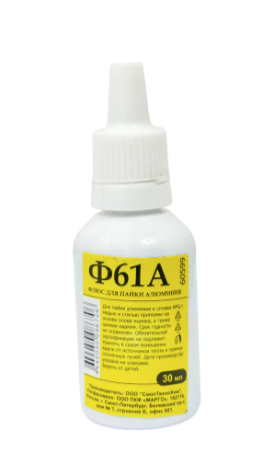 Флюс Ф61а 30 мл, пластиковый флакон с капельницей Россия 60599 служит для пайки алюминия и сплава АМЦ с медью и сталью припоями на основе олова и цинка, а также цинка и кадмия.