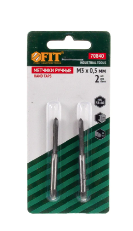 Метрические метчики 3х0.5 мм 2 шт FIT IT 70840 используется совместно с метчикодержателем или электрической дрелью. Данный инструмент предназначен для нарезания метрической резьбы М3х0.5 в сквозных отверстиях.