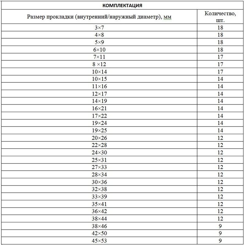 Резиновые уплотнительные прокладки наиболее распространенных размеров.
