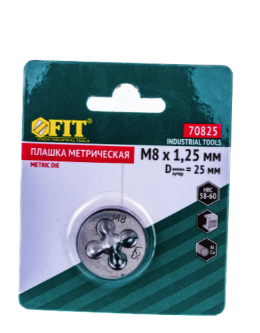 При изготовлении метрической плашки 8х1,25 мм FIT 70825 использовалась легированная сталь, обладающая высокими механическими свойствами.