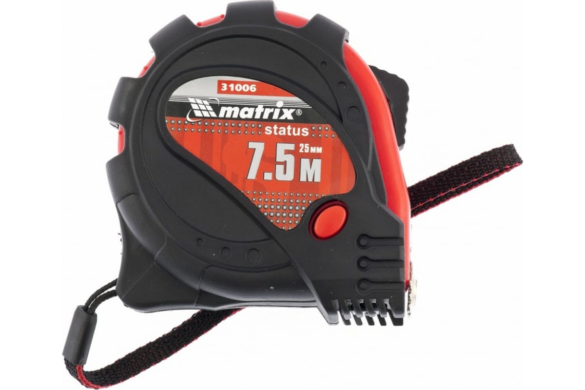 Рулетка 7.5 м х 25 мм Status magnet 3 fixations MATRIX 31006 надежна в использовании. Имеет три фиксатора ленты и магнитный ограничитель для удобства в работе. Прорезиненный корпус полностью защищен от повреждений при случайном падении рулетки.