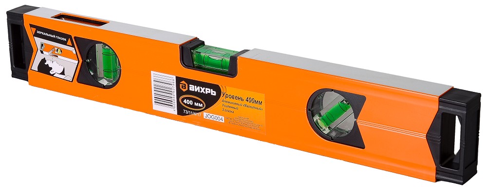 Уровень алюминиевый "Магнитный", 400 мм, 3 глазка (1 зеркальный) ВИХРЬ - измерительный инструмент при строительных, ремонтных и отделочных работах для поиска и исправления отклонения поверхностей. Корпус прочный и износостойкий, изготовлен из алюминия. Фрезерованная рабочая поверхность служит для уменьшения возможной погрешности при измерениях. Длина уровня 400 мм.