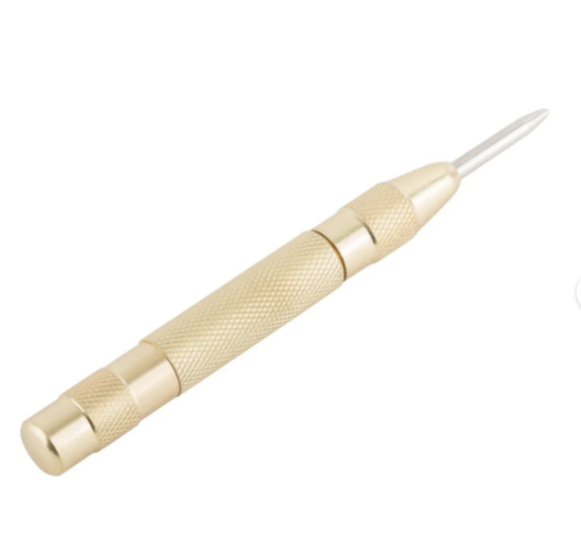 Автоматический кернер предназначен для нанесения разметки и кернения незакаленной стали твердостью до 45 HRC, а также цветных металлов, пластика, дерева, ЛДСП и т.п. материалов. Благодаря пружинному механизму не требует применения молотка и может использоваться одной рукой. Удобен для работы в труднодоступных местах. Сила удара регулируется поворотом колпачка в верхней части кернера. Твердость наконечника 58-60 HRC. Кернер выполнен из инструментальной стали с латунным покрытием, наконечник из быстрорежущей (HSS) стали с антикоррозийным никелевым покрытием.