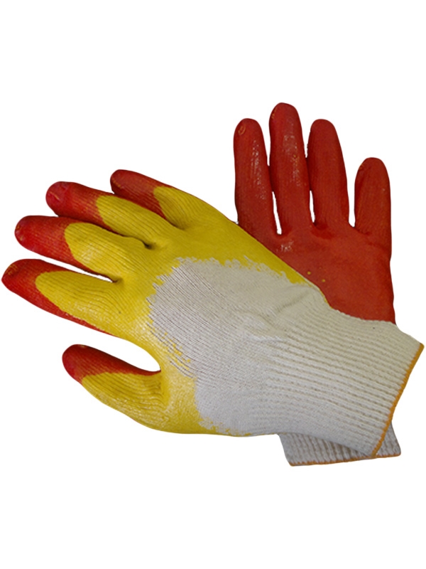 Универсальные рабочие перчатки трикотажные хб с двойным латексным покрытием ладони, с вязаной манжетой. Перчатки предназначены для защиты рук от механических воздействий в производственных и бытовых условиях. Латексное покрытие позволяет крепко удерживать в руках скользящие материалы. Такие перчатки пригодятся не только для складских, погрузочно-разгрузочных, ремонтных работ, но и рыболовам, огородникам, и охотникам. Положите их в автомобиль и, в случае необходимости, вы защитите свои руки от травм и грязи.