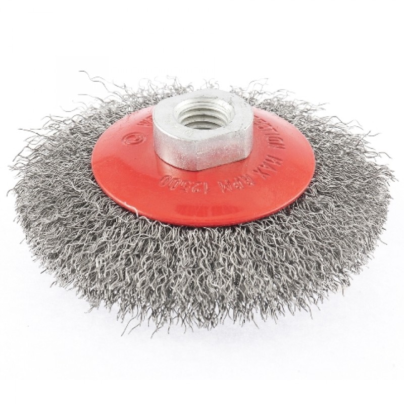 Щетка коническая Эксперт 537 Профоснастка 20804003 предназначена для угловых шлифовальных машин. Применяется для очистных работ. Щетка имеет витую нержавеющую проволоку. Диаметр проволоки – 0.3 мм. Длина проволоки – 28 мм. Максимальное количество оборотов – 12500 об/мин.