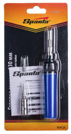 Малая газовая горелка Карандаш + 2 насадки для пайки SPARTA 914125 создает пламя температурой 1300°, которое горит даже при дожде. Она предназначена для выполнения пайки и нагрева деталей. Для осуществления паяльных работ предусмотрены специальные насадки, которые входят в комплект. Диаметр наконечника: 8.5 мм.