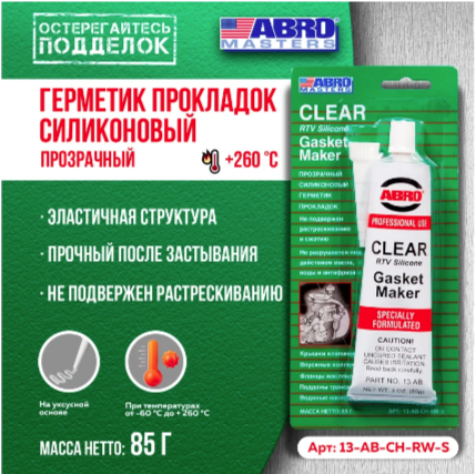ABRO прозрачный Китай 85 гр 13-AB-CH-R-S многоцелевой силиконовый герметик.