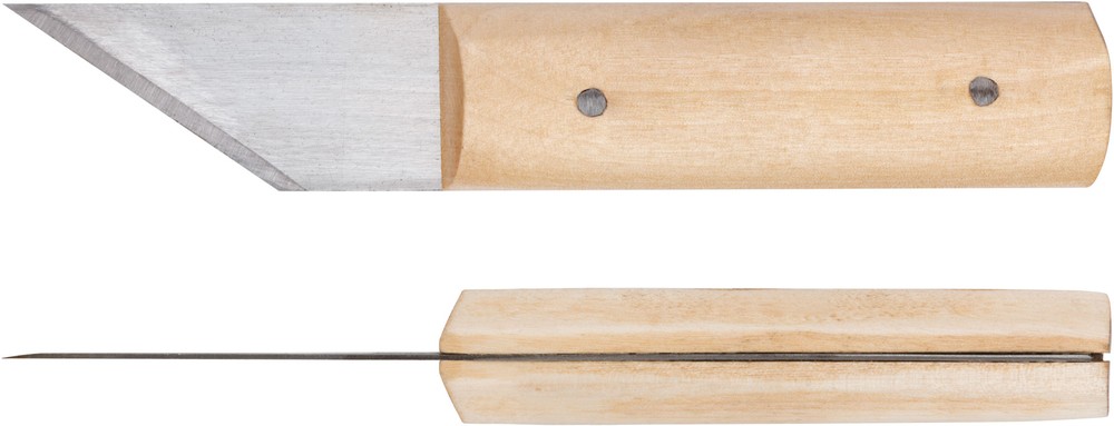 «Металлист». Рассчитан на большие усилия. Для работы с кожей, резиной, линолеумом и т.д. Может применяться при работе с гипсокартоном. Материал: инструментальная сталь, деревянная ручка.