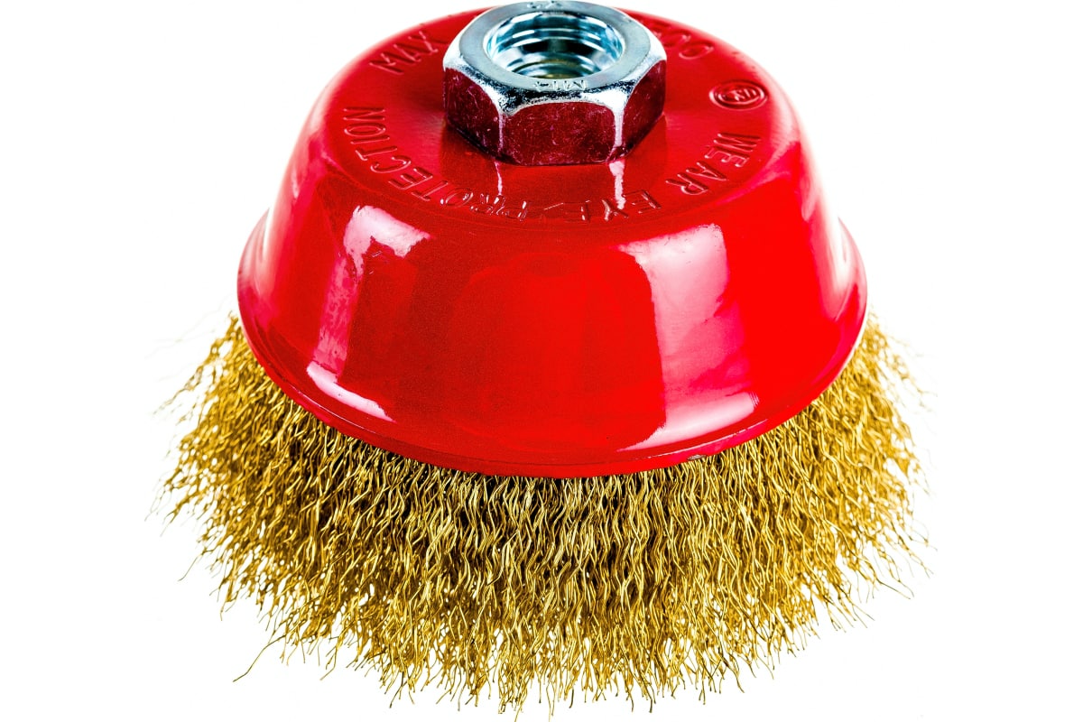 Щетка для УШМ чашечная гофрированная ТМ ПрофОснастка №804, с внешним диаметром 100 мм и посадкой М14*2. В основе кордщетки используется проволока из латунированной стали диаметром 0,3 мм. Максимально допустимая скорость 8500 RPM. Чашечные щетки с гофрированной проволокой используются для легких очистных и зачистных работ на больших плоских поверхностях. Инструмент эффективен для очистки, удаления заусенцев, шлака, коррозии и краски. Щетка рекомендована для использования по всем типам углеродистых сталей. Не использовать для нержавеющей стали